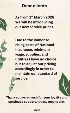 Services that require a deposit are non-refundable, if 48 hours' notice is given for a cancellation the deposit will be transferred towards the next appointment made.